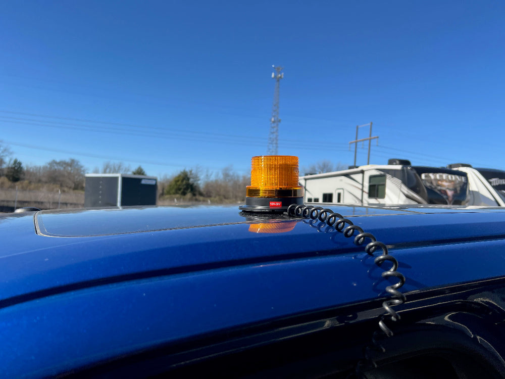 The Power Products Beacon Light is a great portable flashing ligth with a magnetic base. Just plug into your vehicles 12V cigerate lighter port and run the long cable to your roof. The 2 Ft coiled cable can extend over 10 ft making it easy to route to the top of a vehicle. This item is discontinued so we are limited to the supply on hand.
